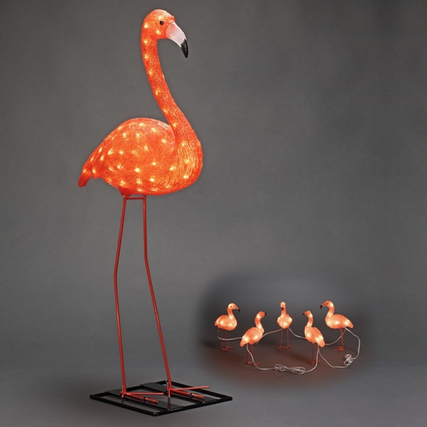 Auch unbeleuchtet sind diese Flamingos ein schöner Hingucker.