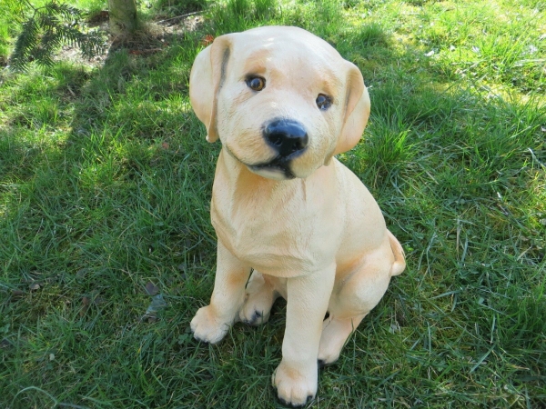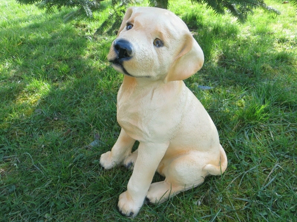 Labradorwelpe sitzend, Kleine Hundefigur Deko, blond, 35 cm hoch