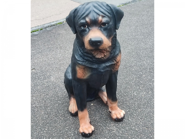 Eine schöne Wohnungsdeko oder Gartendeko: Deko Hundefigur sitzender Rottweiler.