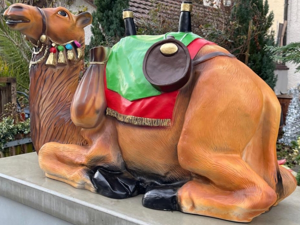 Das Deko Kamel für den Garten wurde sorgfältig und liebevoll einzeln von Hand hergestellt und bemalt.