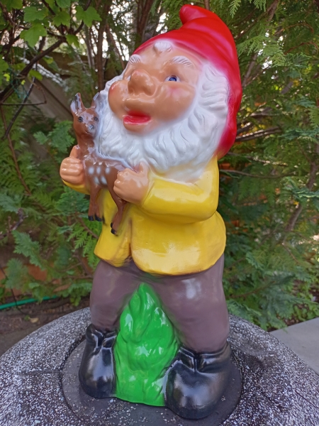 Gartenzwerg mit Rehkitz, 45 cm hoch