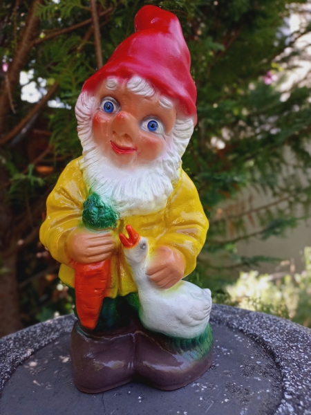 Gartenzwerg mit Gans, 34 cm hoch