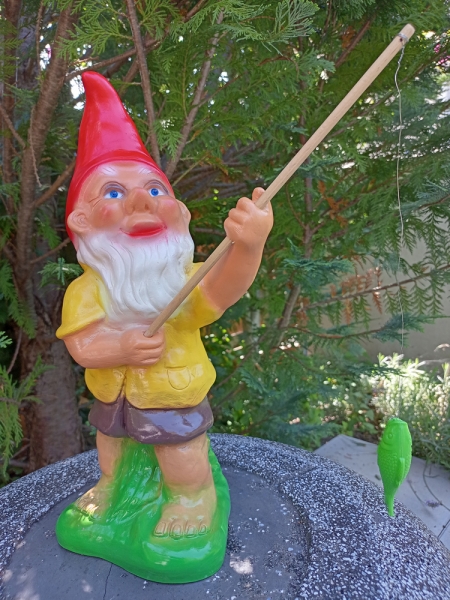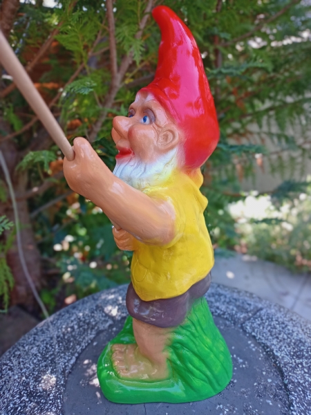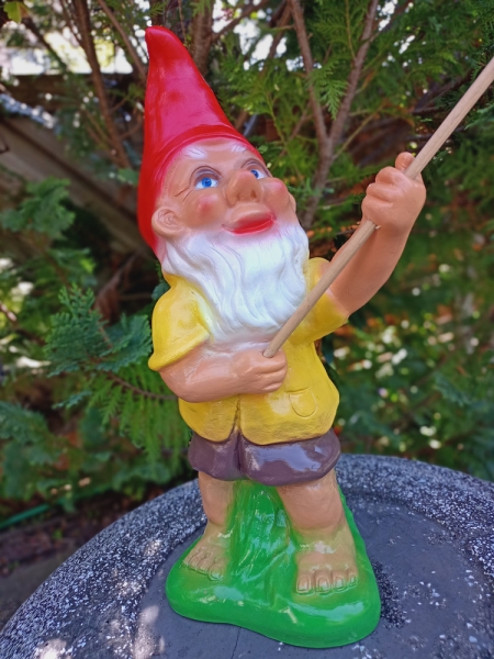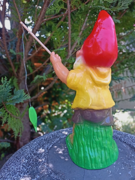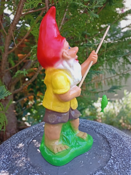 Gartenzwerg am Fischen. Eine schöne Dekofigur für den Gartenteich.