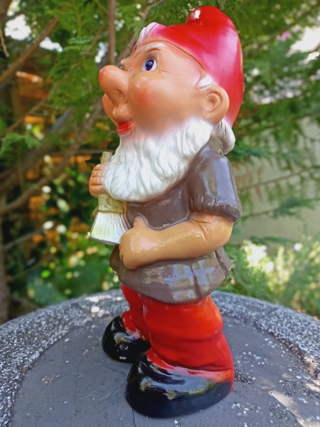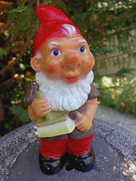 Der Gartenzwerg malt wohl gerade die weissen Punkte auf den Fliegenpilz.