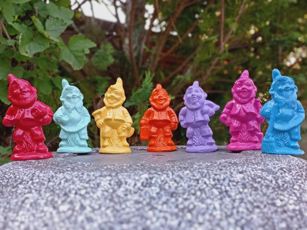7 kleine Gartenzwerge der etwas anderen Art, einfarbig aber nicht monoton.