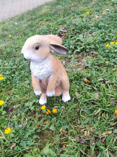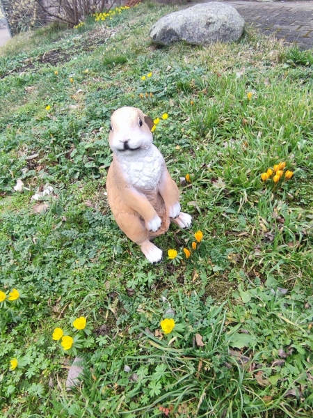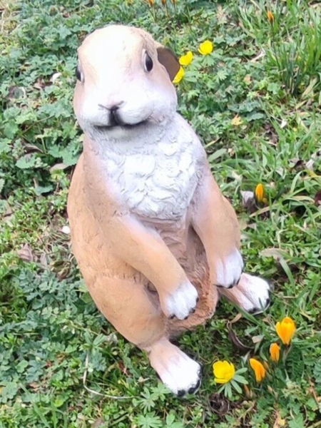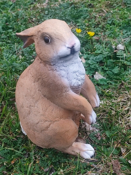 Schöner Dekohase für den Garten: sitzender Hase mit erhobenen Vorderpfoten, 35 cm hoch.