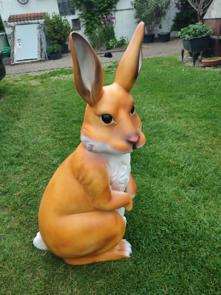 Grosse XXL Hasenfigur für den Garten, 110 cm hoch.
