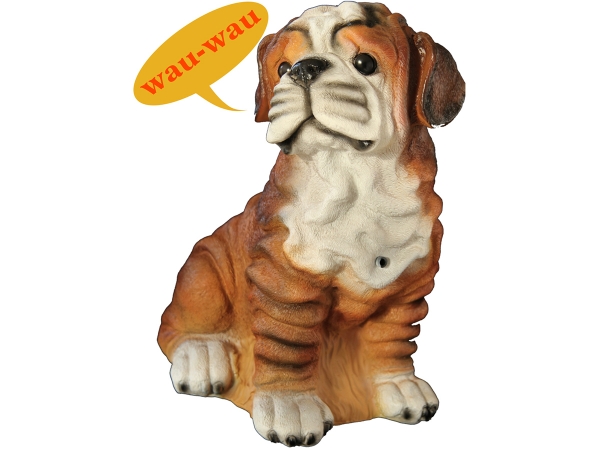 Bellende Hund Dekofigur Mops, mit Bewegungssensor, der bei Annäherung reagiert.
