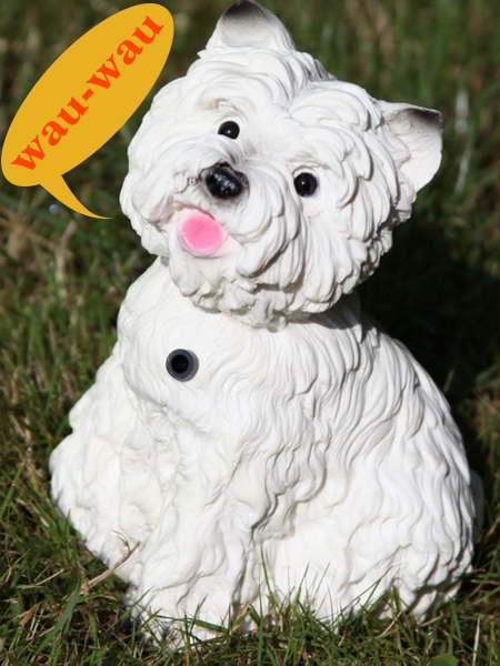 West Highland White Terrier, "Westie", mit Bewegungssensor, bellt bei Annäherung.