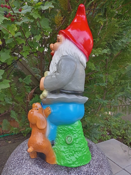 Grosser Gartenzwerg XXL mit Hund, 70 cm hoch