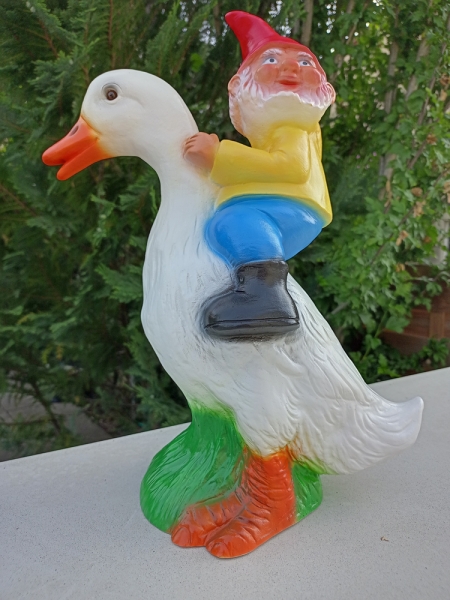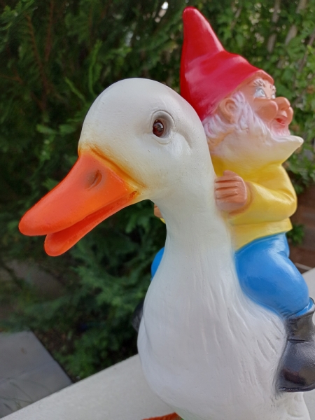 Lustiger Gartenzwerg auf Ente, 40 cm hoch
