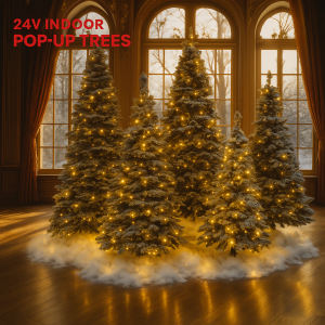 Die beleuchteten Weihnachtsbäume für Innenräume sind bereits mit LED Lichterketten ausgestattet und mit den beflockten Zweigen verleihen sie jeder Wohnung eine winterliche Atmosphäre.