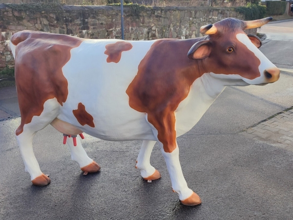 Diese lebensgrosse Dekokuh ist mit einem funktionierenden Melksystem ausgestattet.